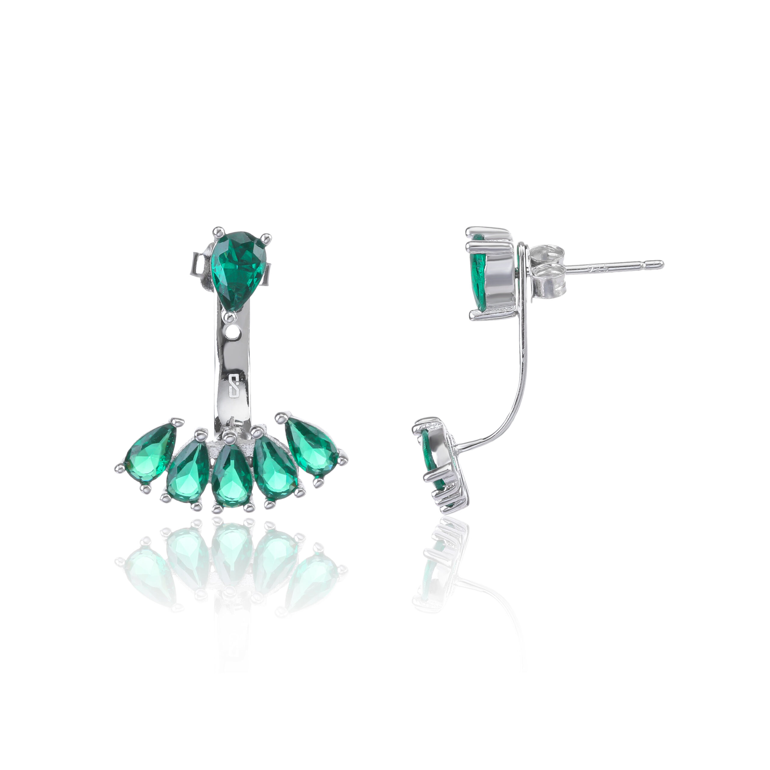 עגילי מניפה צמודות מכסף משובצות אבני אמרלד טיפות