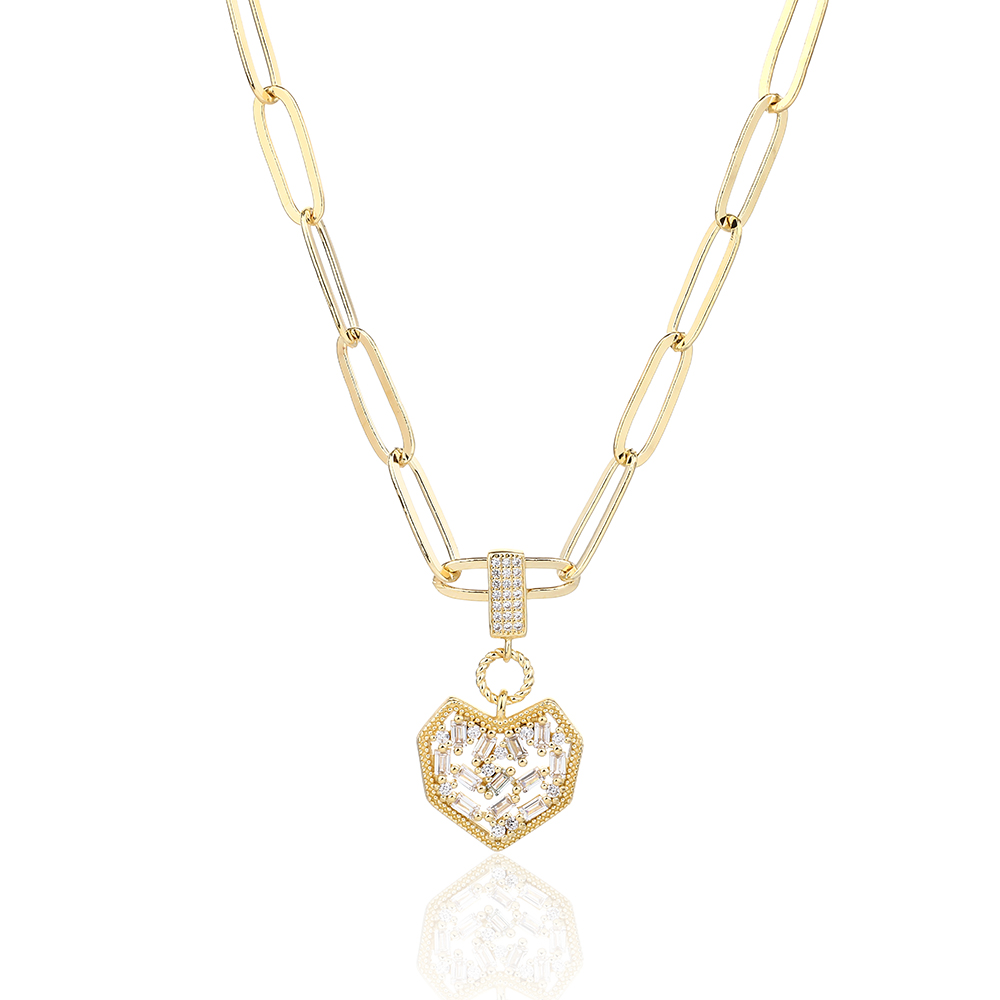 עמוד הבית שרשראות שרשראות ציפוי זהב שרשרת חוליות עם תליון לב משובץ אבני זירקון