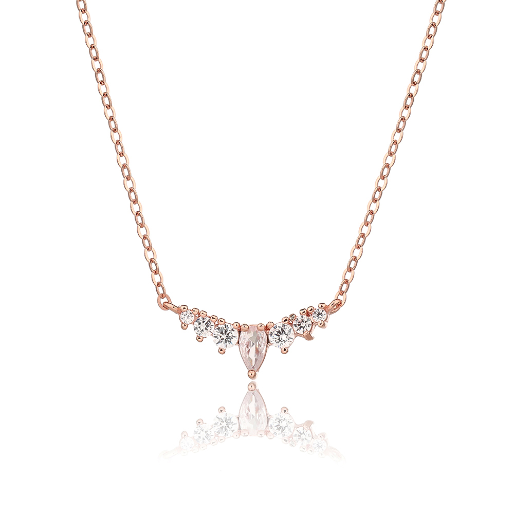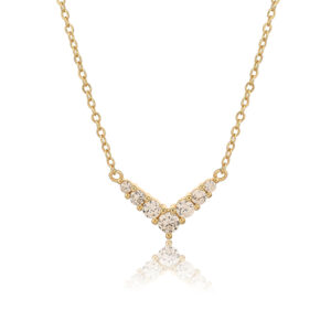 עיצוב: שרשרת דקיקה ועדינה עם אלמנט מרכזי בצורת "וי" (V-shape) משובץ.