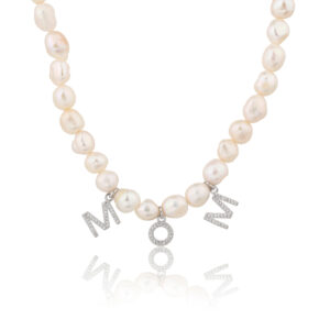 בתוכה פנינים במראה טבעי וייחודי, ומעוטרת בשלושה תליונים עדינים המרכיבים את המילה "MOM" (אמא). התליונים עשויים מכסף 925 איכותי ומשובצים