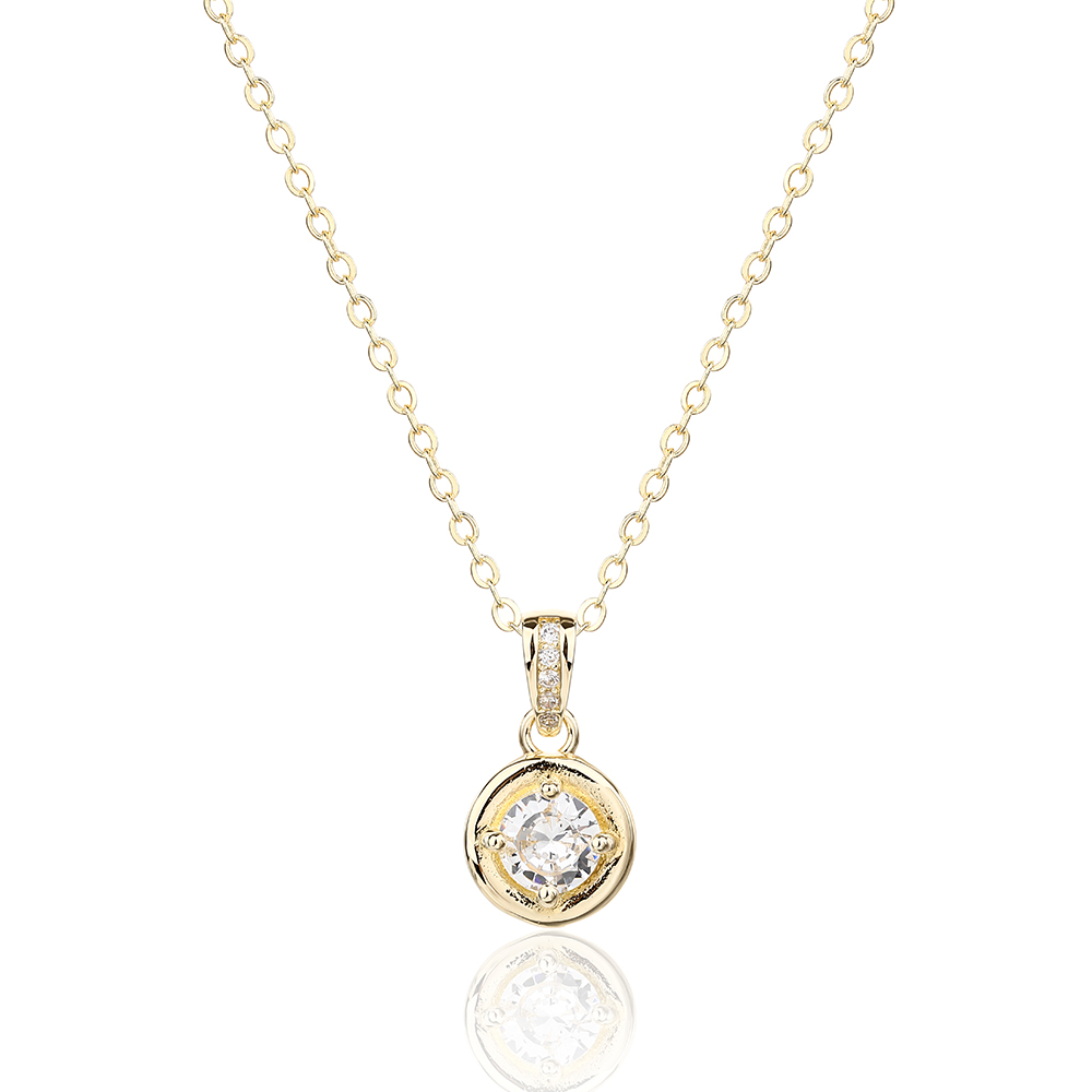 שרשרת פליז בציפוי זהב עם תליון סוליטר זירקון עגול