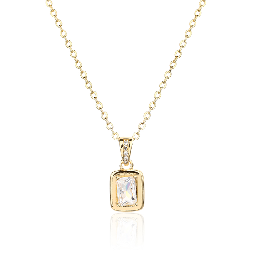 עמוד הבית שרשראות שרשראות ציפוי זהב שרשרת תליון מלבני יוקרתי משובצת אבן זירקון מרכזי