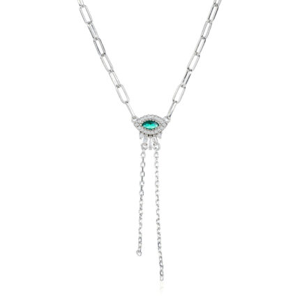 שרשרת עניבה מכסף בשילוב תליון עין הנץ משובץ אבן זירקון במבחר צבעים