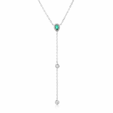 שרשרת עניבה מכסף בשילוב תליון אבן טיפה במבחר צבעים בתוספת 2 זירקונים