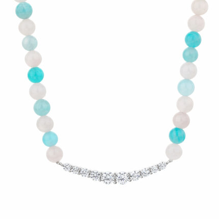 שרשרת חרוזים צבעוניים עם תליון כסף משובצת אבני זירקון